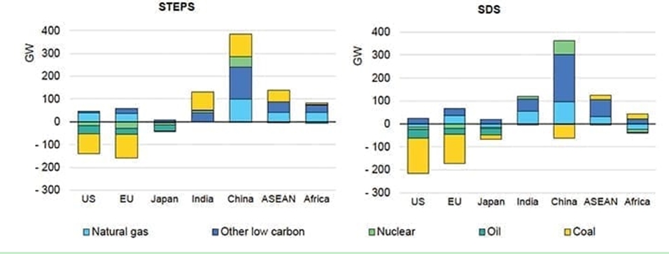 注:STEPS,規定政策方案;SDS,可持續發展方案;EU,歐盟;ASEAN,東南亞國家聯盟;其他低碳能源(包括地熱、集中太陽能、生物質和海洋電力)
