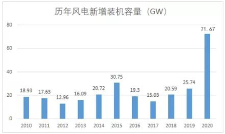 12月風電裝機容量比2018、2019兩年裝機總和還要多。