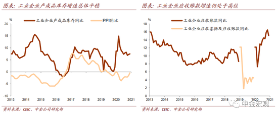 工業(yè)企業(yè)產(chǎn)成品庫存增長平穩(wěn),應(yīng)收賬款增速仍處于高位。12月,工業(yè)企業(yè)產(chǎn)成品庫存同比增長7.5%,略高于11月7.3%的同比增速。12月,工業(yè)企業(yè)應(yīng)收賬款同比增長15.1%,較11月16.5%回落,仍然顯著高于營業(yè)收入同比增速(6.7%)。
