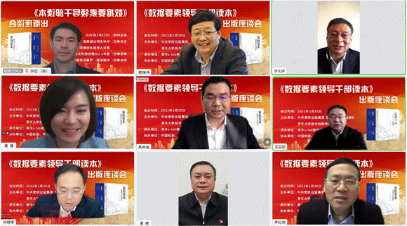2021年1月30日,《讀本》出版座談會在線上舉辦。中央黨校(國家行政學院)副校(院)長李季,第十三屆全國政協常務委員、外事委員會主任、財政部原部長樓繼偉,中國銀行原行長李禮輝,中央黨校(國家行政學院)電子政務研究中心主任、國家電子政務專家委員會副主任王益民等30多名領導和嘉賓參加線上會議并加快培育發展數據要素市場、控制平臺企業壟斷數據要素的系統性風險、數據資源產權等話題進行了探討。