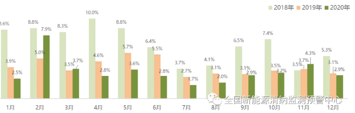 2020年全國棄風率月度變化情況