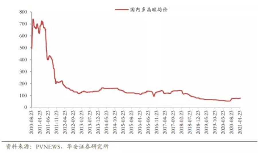 受益于碳達(dá)峰、碳中和戰(zhàn)略,從去年下半年開始出現(xiàn)的硅料“漲價潮”不僅沒有得到緩解,反而愈演愈烈。本周最新的硅料報價已飆升至130元/kg左右,距離去年低點(diǎn)已然翻倍。不僅如此,價格高企和“一硅難求”的現(xiàn)象或?qū)⒊掷m(xù)整個2021年。