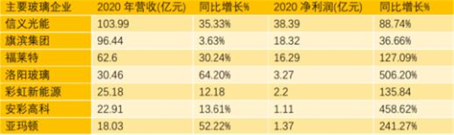 近日,信義光能、福萊特、安彩高科、彩虹新能源、洛陽玻璃、亞瑪頓等多家玻璃公司相繼公布了2020年年度報(bào)告,業(yè)績(jī)?cè)鲩L(zhǎng)一個(gè)賽一個(gè),多家公司創(chuàng)下凈利歷史記錄,凈利同比增長(zhǎng)最高達(dá)到506.2%。