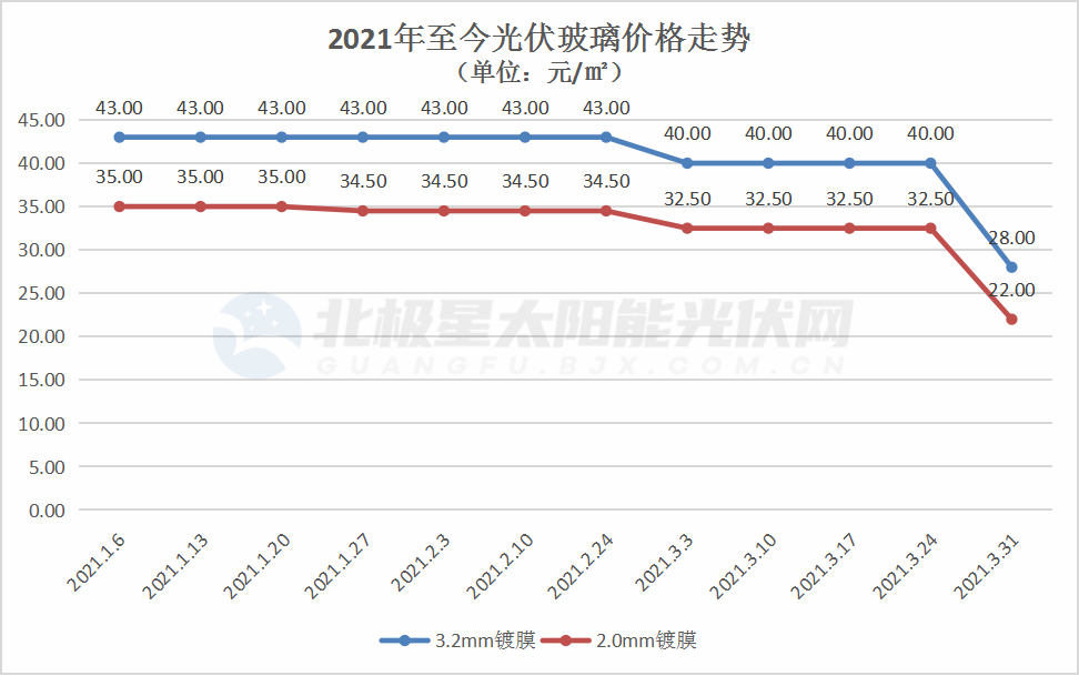 PVInfoLink發布的最新光伏供應鏈價格信息中,光伏玻璃價格大幅降低,引人關注。相較于年初,3.2mm鍍膜的光伏玻璃均價降低15元/㎡,降幅35%;2.0mm鍍膜的光伏玻璃均價降低13元/㎡,降幅37%。