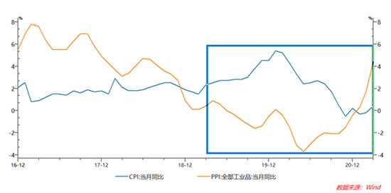 從近兩年以來CPI和PPI通脹數(shù)據(jù)的走勢看,CPI和PPI同比增速波動加大而非趨勢性上行。CPI受非洲豬瘟對豬肉價格沖擊的影響,2020年1月同比高達5.4%,2020年11月同比降至-0.5%。PPI受疫情對大宗商品價格的沖擊影響,2020年5月同比下行至-3.7%,2021年3月上行至4.4%。