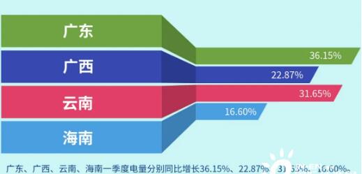 南網總調專家分析稱,對比近三年第一季度歷史數據,南方電網全網、廣東、廣西、海南電量增速顯著高于往年,云南則是大幅、穩定高于往年,貴州隨氣溫波動電量正常增長。