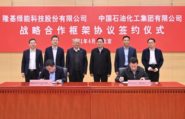 2021年4月13日,中國石油化工集團有限公司(以下簡稱中國石化)與隆基綠能科技股份有限公司(以下簡稱隆基股份)在中國石化總部簽署了戰略合作協議。根據協議:未來雙方將以國家“2030年前碳達峰、2060年前碳中和”目標為指引,發揮各自優勢,通過全方位協同,在分布式光伏、光伏+綠氫、化工材料等多領域形成深度的合作關系,共同開拓清潔能源應用市場。