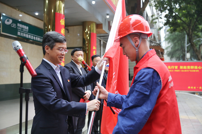 楊華宣讀了共產黨員服務隊成立文件并就共產黨員服務隊成立相關情況進行了介紹。楊華要求,服務隊要堅持不忘初心、立足崗位、踐行宗旨、服務至上、專業專注、追求卓越,切實把服務隊建設好、管理好、發展好,讓國家電網四川電力(科銳得)連心橋共產黨員服務隊的旗幟高高飄揚。