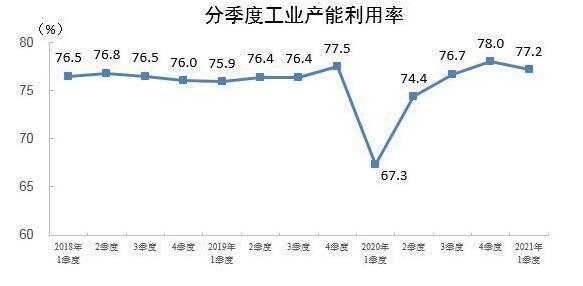 據國家統計局網站消息,一季度,全國工業產能利用率為77.2%,比上年同期上升9.9個百分點。