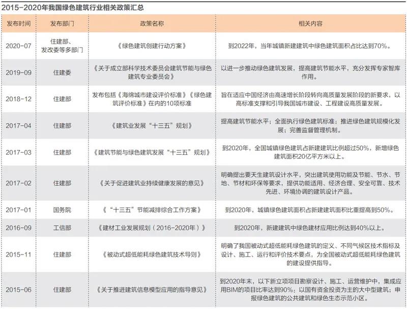 2020年7月24日,住建部、發改委、工信部等七部門聯合出臺《綠色建筑創建行動方案》,提出推動綠色建材應用,加快推進綠色建材評價認證和推廣應用,建立綠色建材采信機制,推動建材產品質量提升,指導各地制定綠色建材推廣應用政策措施,推動政府投資工程率先采用綠色建材,逐步提高城鎮新建建筑中綠色建材應用比例,打造一批綠色建材應用示范工程,大力發展新型綠色建材。