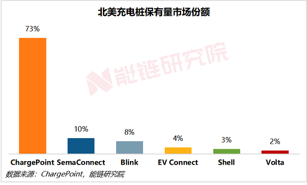 ChargePoint總部位于美國加州,是一家銷售充電樁,同時提供網絡運營和維護服務的技術公司,是全球最大的電動汽車充電樁平臺之一,其北美市場份額達到73%,為第二名SemaConnect的7倍。