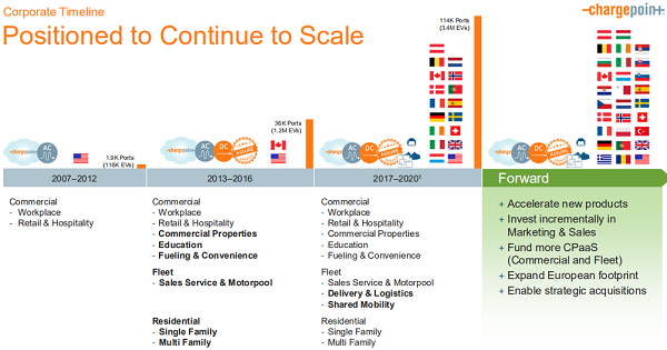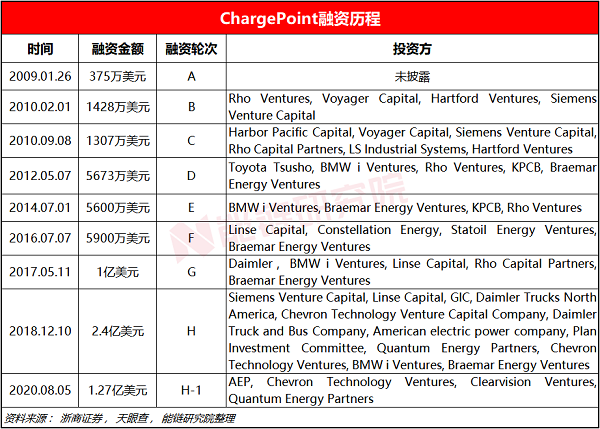 計劃2021年IPO,估值24億美元。2020年9月,ChargePoint 宣布擬通過與空殼公司Switchback Energy Acquisition Corp合并上市,估值24億美元。