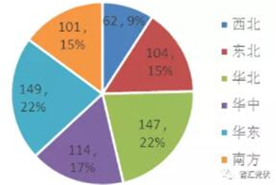 從區域分布來看,中東部和南方地區新增風電并網363萬kW,占全國的53.6%。各區域一季度新增裝機如下圖所示。