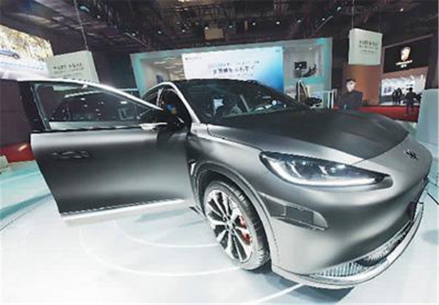 4月19日,應用了華為智能駕駛技術的極狐阿爾法S智能豪華純電轎車亮相2021上海車展,頗受車迷關注。 龍巍 攝(人民視覺)