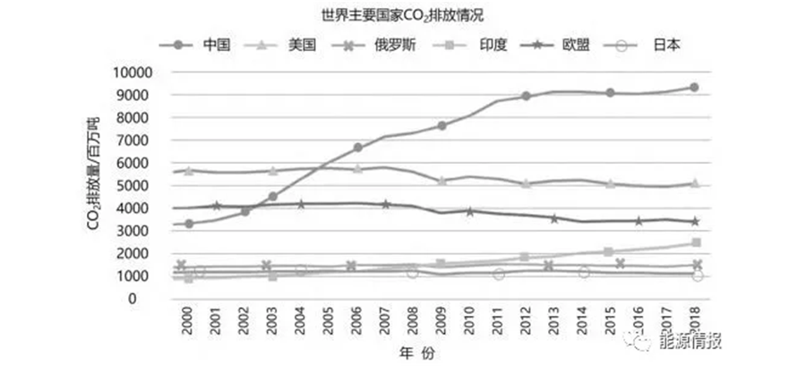 圖 3 2000—2018 年世界主要國家 CO2排放情況
