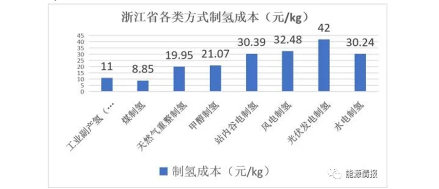 圖 7 浙江省各類原料成本測算制氫成本比較