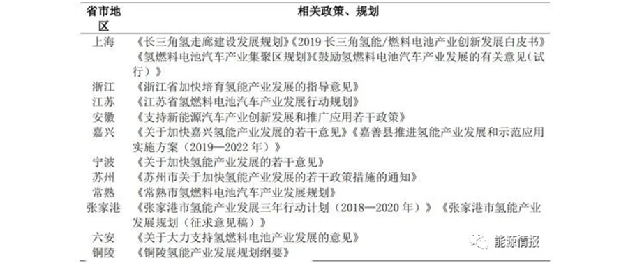 表 4 長三角氫能相關政策及規劃