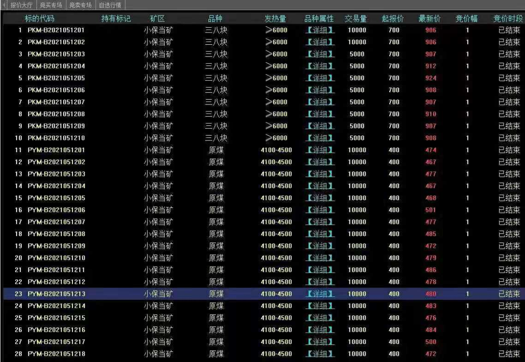 小保當煤礦今日競價銷售,原煤交易量較上期增加3萬噸,3-8塊交易量較上期增加1萬噸,其中原煤起拍價為400元/噸,較上期起拍價上調60元/噸,最高成交價為501元/噸,較上期最高成交價上漲101元/噸;3-8塊起拍價為700元/噸,較上期起拍價上調90元/噸,最高成交價為924元/噸,較上期最高成交價上漲205元/噸。