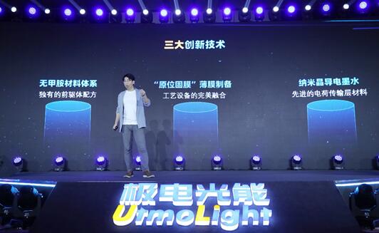 發(fā)布會(huì)現(xiàn)場(chǎng),極電光能聯(lián)合創(chuàng)始人兼副總經(jīng)理鄭策博士首次對(duì)外發(fā)布了鈣鈦礦太陽(yáng)能組件"極創(chuàng)"整體解決方案,推出無(wú)甲胺鈣鈦礦材料體系、"原位固膜"薄膜制備技術(shù)和納米晶導(dǎo)電墨水三大技術(shù)創(chuàng)新,從材料制作、技術(shù)應(yīng)用、配方改進(jìn)等維度打造核心技術(shù)優(yōu)勢(shì),逐個(gè)攻破鈣鈦礦產(chǎn)業(yè)在效率提升、大面積制備以及穩(wěn)定性方面的行業(yè)痛點(diǎn),為鈣鈦礦商業(yè)化量產(chǎn)掃清障礙。