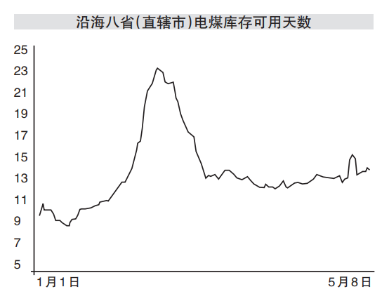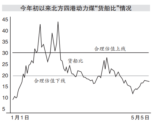 一方面電煤日耗明顯減少。5月9日,CCTD沿海八省(直轄市)樣本電廠的電煤日耗為172.9萬噸,比1月上旬的高點(diǎn)減少了70萬噸,下降了30%左右。另一方面,電煤采購的緊迫性明顯降低。5月9日,CCTD沿海八省(直轄市)樣本電廠的電煤庫存可用天數(shù)為13.8天,比1月上旬提高了4天以上。“近期北方四港的‘貨船比’指標(biāo)明顯好于1月上旬水平。”李學(xué)剛認(rèn)為,現(xiàn)貨動力煤供求關(guān)系及其價格對整體動力煤市場的影響被夸大,而且在上漲的市場中,大型煤企獲得的利益遠(yuǎn)遠(yuǎn)小于小型煤企。