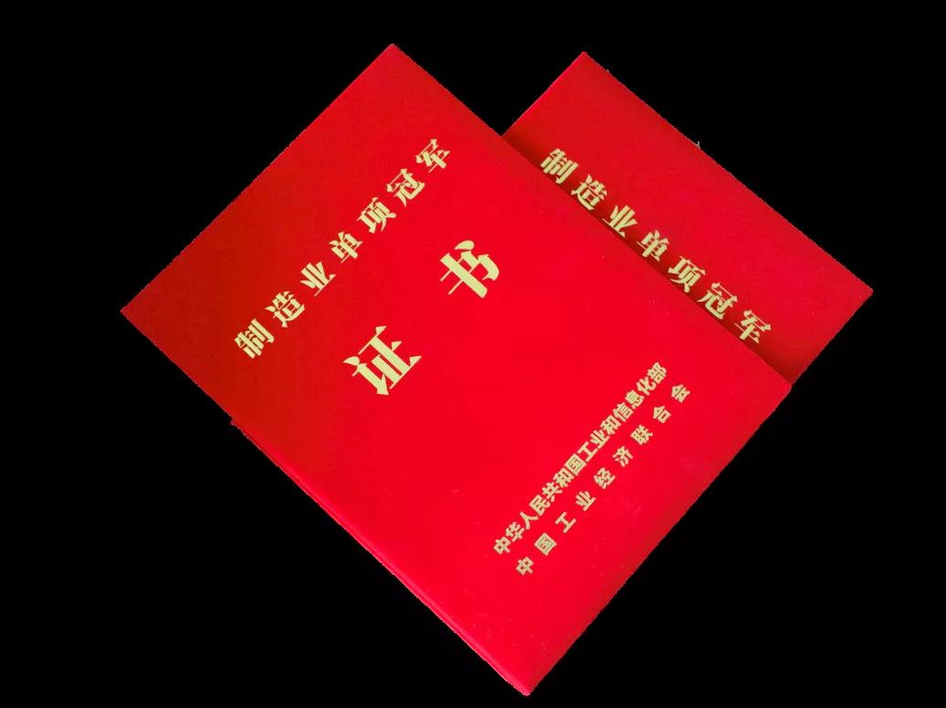 兩本中國(guó)制造業(yè)單項(xiàng)冠軍產(chǎn)品證書