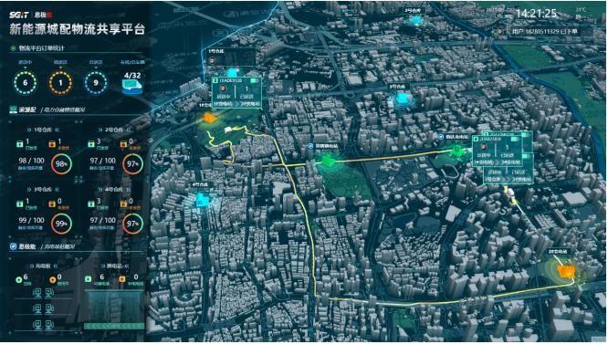 新能源智慧物流共享平臺,以城配物流業務為核心,新能源運力服務為依托,結合倉儲、充換電等業務場景,基于行業大數據與物聯網設備集成,實現各環節數據的高效交互。實時定位車輛所處位置、監測車輛載貨情況,通過大數據路線規劃算法模型,實現物資的一次或多次配送規劃,通過平臺的智能調度,有效縮短運輸時長,提升配送效率。