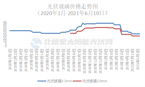 據(jù)北極星太陽能光伏網(wǎng)統(tǒng)計,2021年初至今光伏玻璃價格跌幅達到42.5 %,一度瘋狂的光伏玻璃在產(chǎn)能“大躍進”下價格逐漸回歸理性。