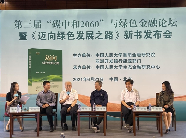 繼第一屆、第二屆“碳中和2060”與綠色金融論壇后,2021年6月21日,中國人民大學重陽金融研究院(人大重陽)、亞洲開發(fā)銀行能源部門主辦,中國人民大學生態(tài)金融研究中心承辦的第三屆“碳中和2060”與綠色金融論壇在中國人民大學隆重召開。會上發(fā)布了由亞洲開發(fā)銀行能源部與人大重陽共同策劃完成的《邁向綠色發(fā)展之路》圖書。近30萬觀眾在線上參與了會議。