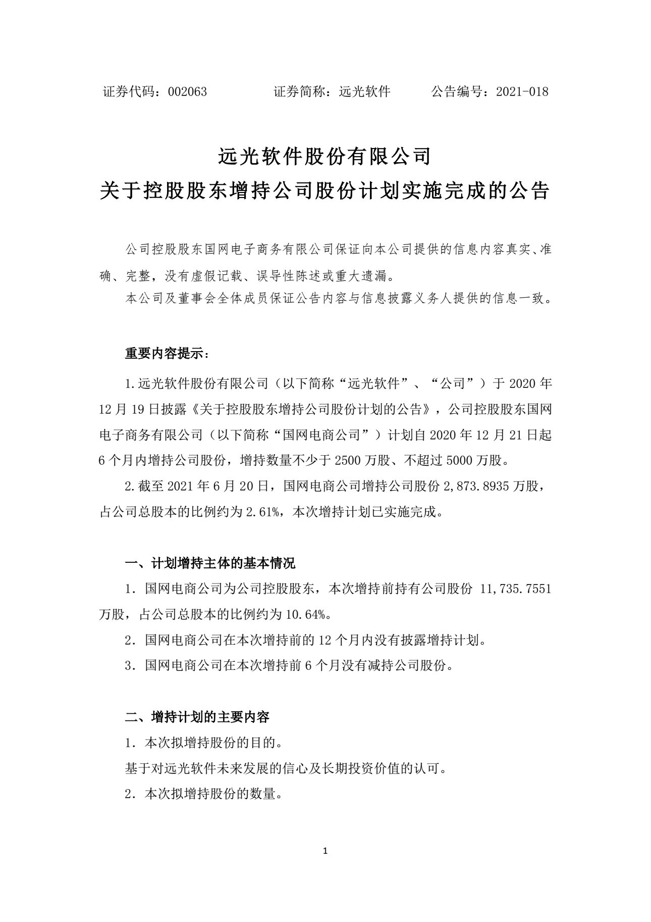 遠(yuǎn)光軟件控股股東國網(wǎng)電商公司累計(jì)增持比例達(dá)2.61% 增持實(shí)施完成