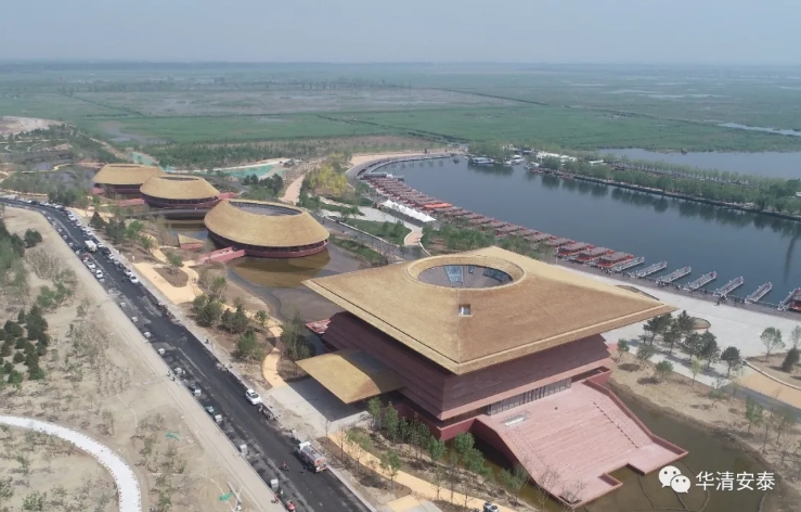 白洋淀旅游碼頭承載著歷史和未來,為響應(yīng) “千年大計、未來之城”的雄安新區(qū)建設(shè),2020年對老碼頭進(jìn)行提升改造。新碼頭建筑面積10395平方米,包含“一葦閣+ 撫水軒+ 蘆舫”四個建筑,恢宏大氣的新碼頭將中華風(fēng)范和當(dāng)?shù)厝宋摹⒆匀幌嘟Y(jié)合。其中一葦閣是白洋淀生態(tài)科技展示館,以白洋淀特征的蘆葦作為屋面主材;撫水軒和蘆舫作為游客服務(wù)中心,通過高聳的蘆葦屋面、停泊在淀上的船屋意向來回應(yīng)當(dāng)?shù)氐牡韰^(qū)文化,三者共同塑造出了微縮白洋淀上一處優(yōu)美的建筑景觀。