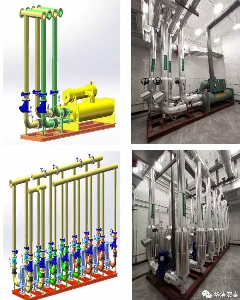 項目設(shè)計和安裝采用華清安泰開發(fā)的基于BIM的組配式能源機(jī)房技術(shù),在初步設(shè)計圖紙的基礎(chǔ)上運用二次深化設(shè)計和三維仿真模型設(shè)計的技術(shù),以高效節(jié)能控制系統(tǒng)為核心,進(jìn)行設(shè)備最優(yōu)選型匹配,實現(xiàn)工廠預(yù)制、模塊運輸、現(xiàn)場拼裝,節(jié)約了施工工期、降低了安全隱患、提高了產(chǎn)品質(zhì)量,每個設(shè)備、管段、模塊賦予二維碼信息,信息自動導(dǎo)入華清安泰“互聯(lián)網(wǎng)+”智慧能源管理平臺,實現(xiàn)了全壽命周期信息化管理。