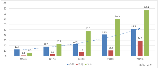 本月,中國電動汽車充電基礎(chǔ)設(shè)施促進(jìn)聯(lián)盟發(fā)布的《2020-2021年度中國充電基礎(chǔ)設(shè)施發(fā)展報告》(以下簡稱《發(fā)展報告》)顯示,2020年,我國充電基礎(chǔ)設(shè)施建設(shè)規(guī)模持續(xù)高速增長,截至2020年底,公共充電樁保有量數(shù)量79.8萬個,私人充電樁數(shù)量87.4萬個,建設(shè)規(guī)模持續(xù)保持世界首位。