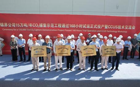 2021年6月25日上午, 國家能源集團國能錦界公司建設的"15萬噸/年燃燒后CO2捕集示范工程"一次通過168小時滿負荷試運正式投產,并成功舉辦CCUS技術交流會。陜西省及榆林市政府部門、國內知名科研院所、國家能源集團領導、參建單位等共同見證了工程的正式投產,與會領導專家發表現場致辭并就后續工程的連續運行提出建議。