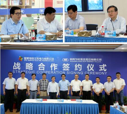 7月14日,雙良節能系統股份有限公司(簡稱“雙良節能”)與國家電投江蘇電力有限公司(簡稱“國電投江蘇公司”)達成戰略合作。雙良節能董事長繆文彬,雙良節能副總經理、雙良智慧能源董事長胡高峰,雙良智慧能源總經理齊書榮,雙良新能源裝備總經理王法根、無錫混沌能源總經理王玨,國電投江蘇公司黨委書記、總經理邢連中,發展策劃部主任張謙,無錫分公司總經理葛前華等出席了簽約儀式并進行了座談,雙方將在暖通節能領域構建長期的戰略合作伙伴關系,積極建設“綠色低碳、經濟環保、多能互補、智能互聯”的智慧能源體系。