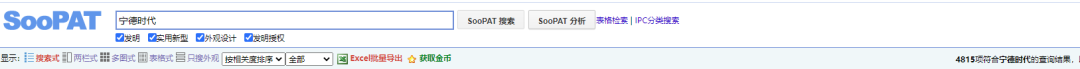 在SooPAT 專利搜索上,寧德時代有發(fā)明專利1736項,實用新型專利2241項,外觀設(shè)計52項,發(fā)明授權(quán)專利786項,合計4815項。