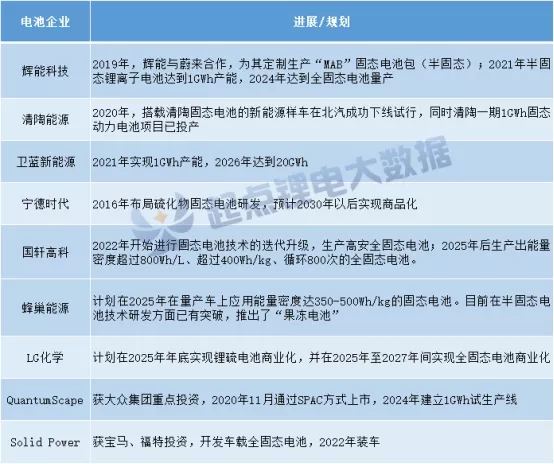 因此,不僅有寧德時代、LG化學、比亞迪、國軒等龍頭電池企業布局,還有如輝能科技、清陶能源、衛藍新能源等先行者。