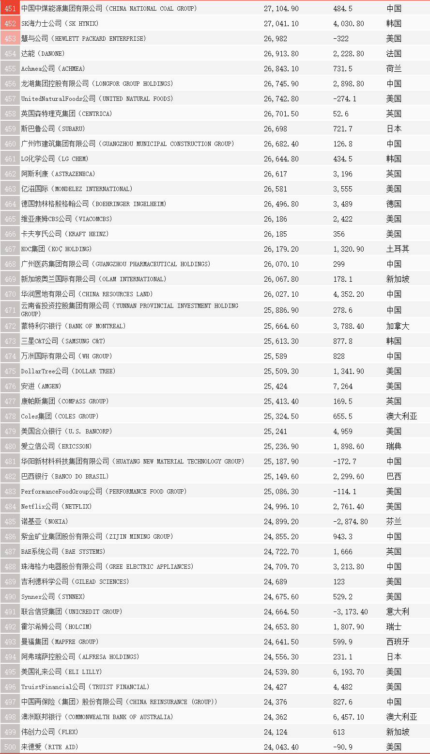 此外,在排名位次的變化上,今年上升最快的是晉能控股集團,大幅躍升325位,位列第138位;山東能源集團上升225名,位列第70位。但是需要注意的是,這兩家公司排名躍升均是由于幾家世界500強能源與礦業公司之間的重組合并。其中,山東能源集團與兗礦集團聯合重組。晉能控股來自多家世界500強的重組與整合,包括原同煤集團、晉煤集團、晉能集團和潞安集團等公司。