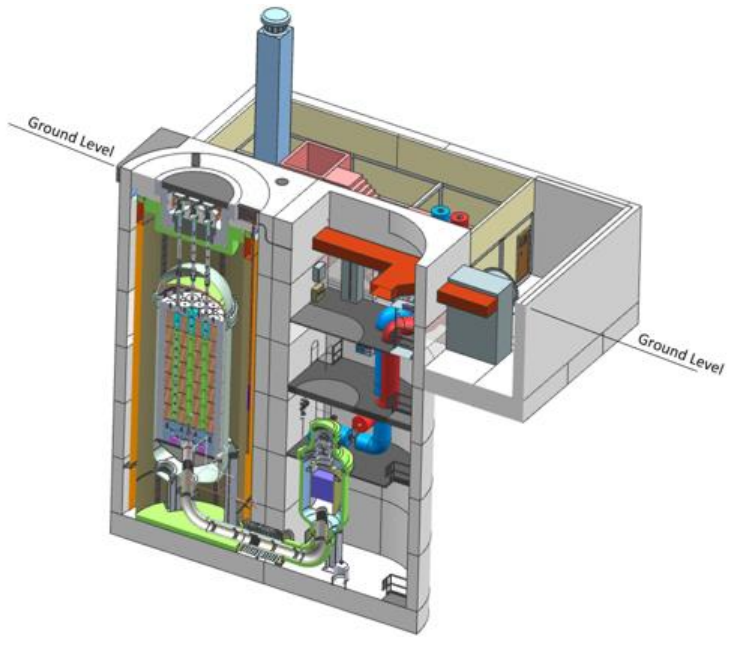 加拿大MMR™核電機組反應堆安全廠房剖視圖(反應堆壓力容器大,是這種堆的特點)[3]