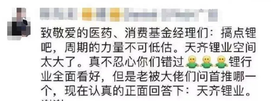 曾有新能源分析師向消費(fèi)主題的基金經(jīng)理推薦天齊鋰業(yè):