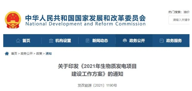國家發改委、國家能源局、財政部三部委近日聯合發布《2021年生物質發電項目建設工作方案》。