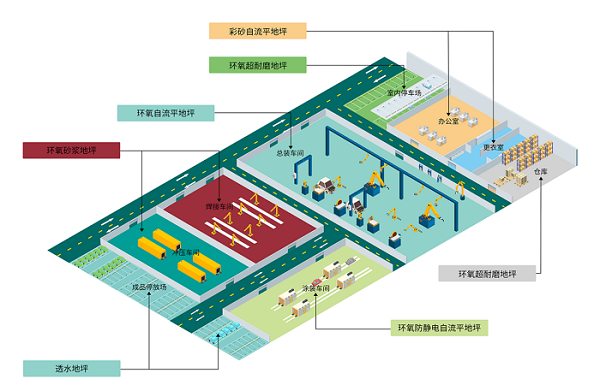 適用于新能源汽車整車制造多車間場景的地坪解決方案
