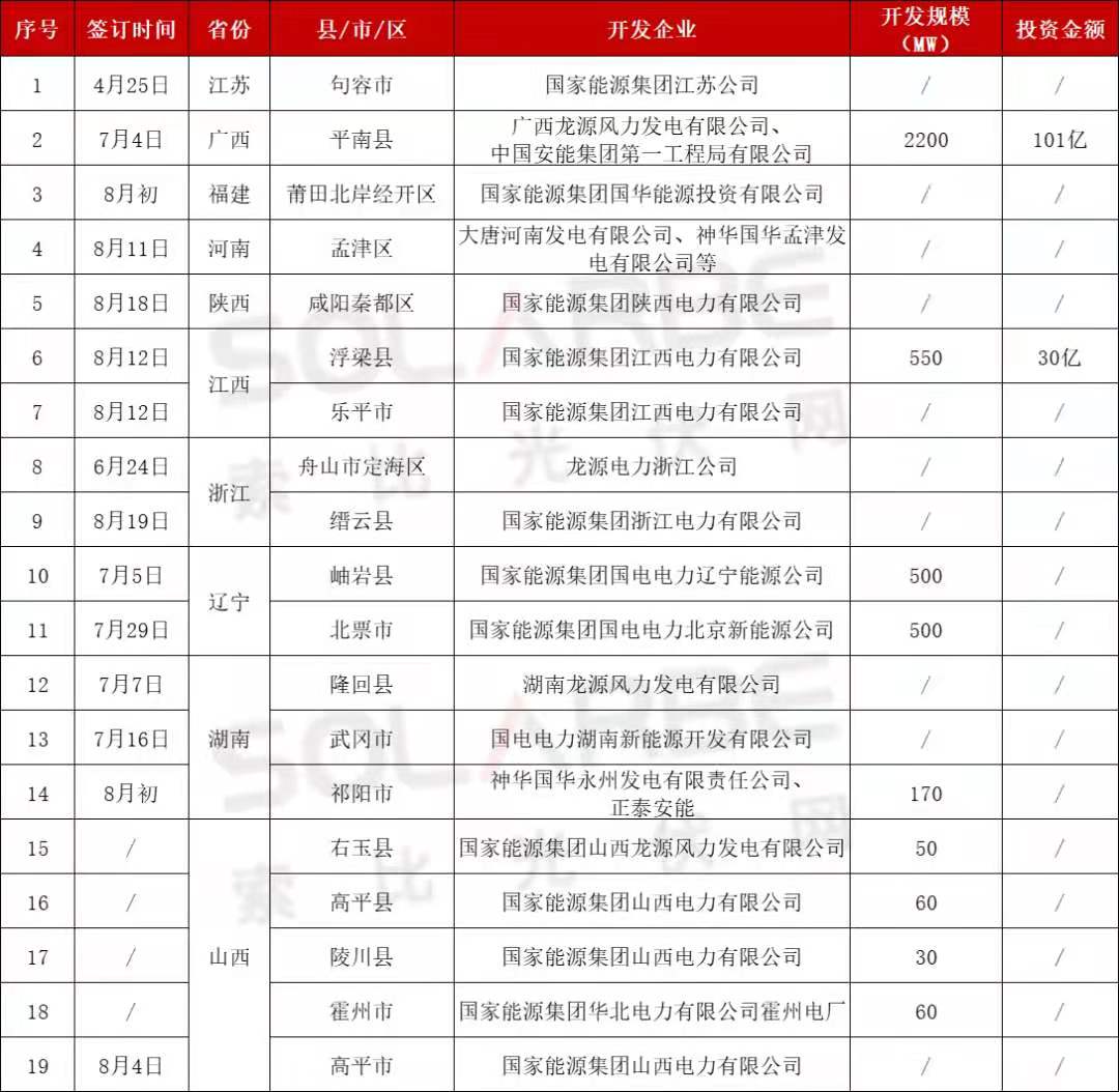 上半年,國家能源集團江蘇公司、龍源電力浙江公司分別與江蘇句容市、浙江舟山市定海區簽署了整縣屋頂分布式光伏等相關協議。