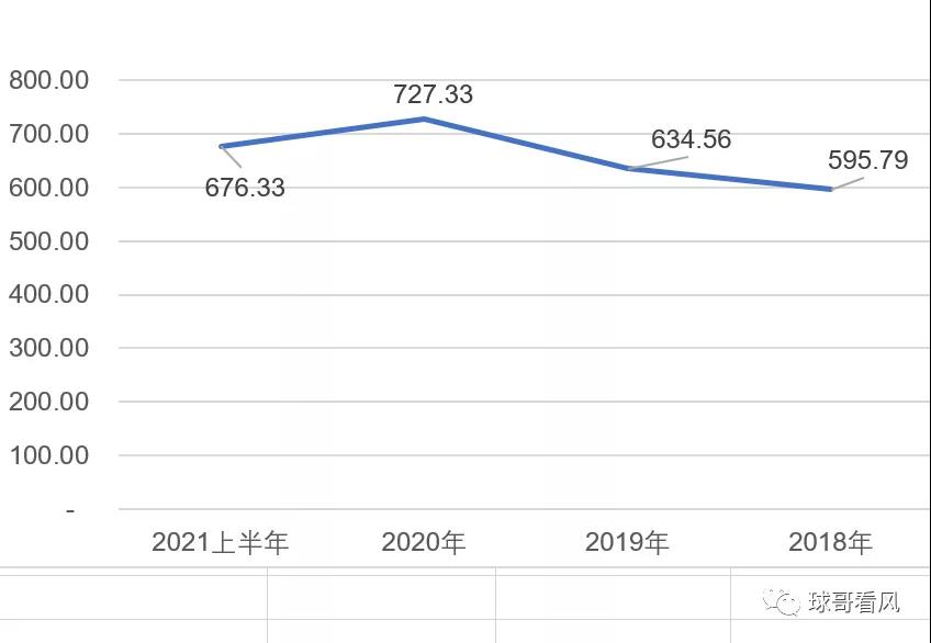 我們同時也發現,葉片的價格確實非常令人堪憂,在平價風電主機價格一路狂飆的形勢下,仍然保持高位。根據中材科技2018年以來的年報和中報數據,統計分析了一下其葉片的單位千瓦銷售價格,其價格竟然高達676元/kw,與2020年的727元價格相比,下降幅度僅為7%。