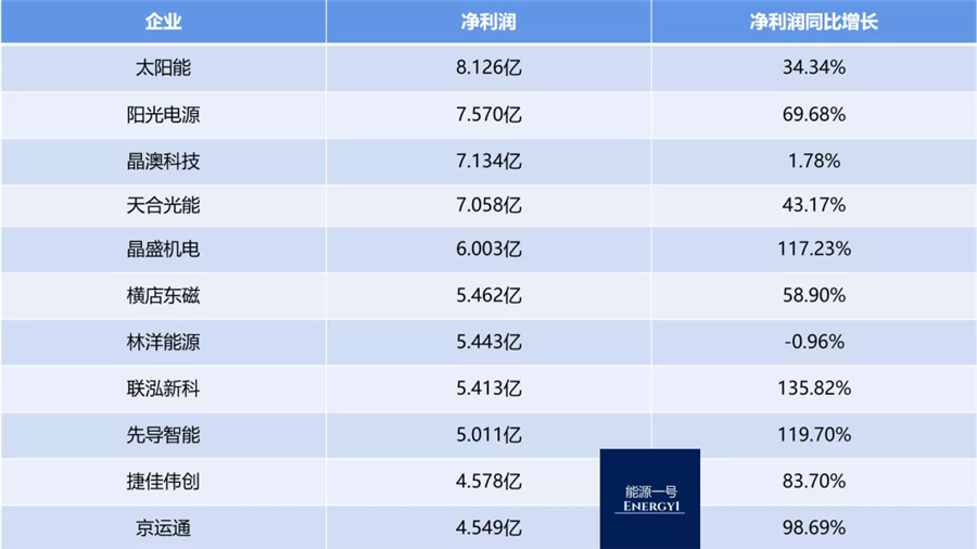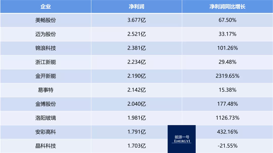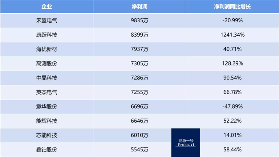 凈利來(lái)說(shuō),隆基股份、特變電工、通威股份、正泰電器、中環(huán)股份等繼續(xù)保持凈利高數(shù)值。凈利增長(zhǎng)較快的為特變、通威、福斯特、上機(jī)數(shù)控、天合光能、晶盛機(jī)電、錦浪科技、固德威、海優(yōu)新材等。