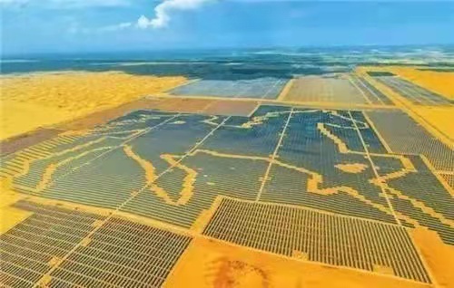 近三年,在庫布齊沙漠上,出現了大片的方格。經過確認,這是一排排的光伏板。僅這個駿馬圖案,就是由近20萬塊光伏板組成。目前,整個區域的數量超過300萬塊,是全國最大的沙漠集中式光伏發電基地。而且面積還將擴大,即將啟動的三期項目一旦完工,整個基地的年發電量可達40億千瓦時,相當于一個經濟強縣一年的全社會用電需求。
