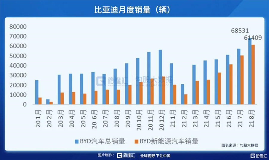 值得一提的是比亞迪8月新能源乘用車銷量再創(chuàng)歷史新高,達(dá)到67630輛,同比增漲331.9%,環(huán)比增長21%。其中DM車型銷量30126輛,純電銷量30382輛。電動車銷量60508輛;燃油車銷量7122輛。