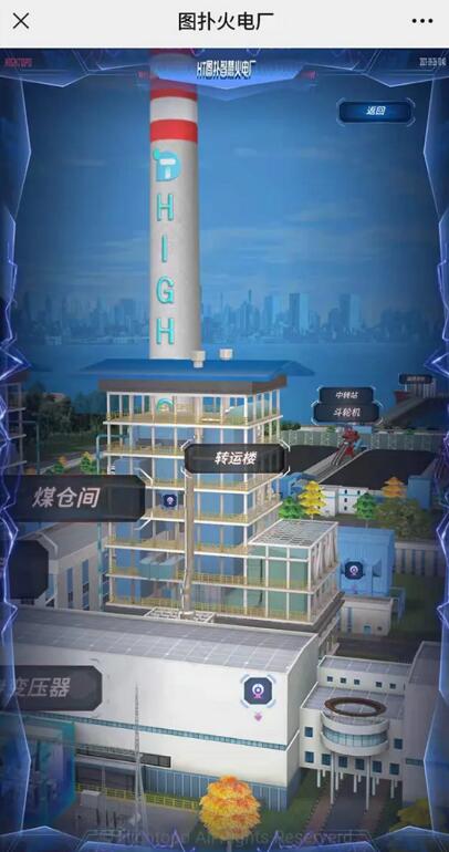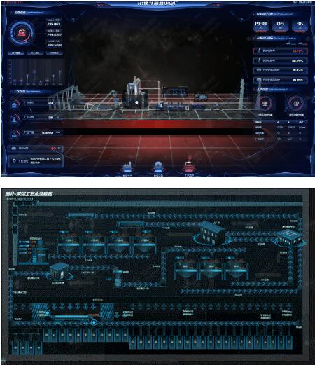 通過點(diǎn)擊底部智慧生產(chǎn)功能,運(yùn)用動(dòng)畫效果模擬火電廠的生產(chǎn)流程場景,直觀展示了以煤的運(yùn)輸、存儲(chǔ)、輸送、燃燒、發(fā)電的一系列生產(chǎn)過程,配以文字說明與其主要特性,具有科技感的逼真視覺效果讓用戶清晰了解智慧火電廠的運(yùn)作。