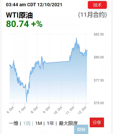 WTI紐約原油價格突破80美元大關(guān),周一盤中一度飆升至每桶82.18美元,這是自2014年10月以來,紐約原油價格7年內(nèi)達到的最高值。