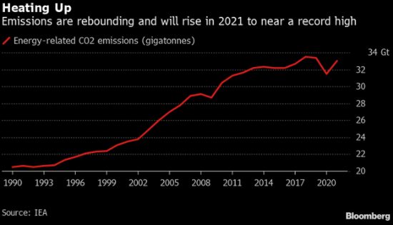 在第26屆聯合國氣候變遷大會召開之前的幾周,IEA發表一份報告稱,對太陽能和風能等綠色能源的投資金額不足以防止地球顯著變暖所需。與此同時,如果當前對石油、天然氣和煤炭的需求繼續增長,化石燃料的支出將低于需求。