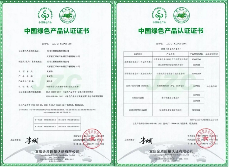 近日,三棵樹防水旗下七類防水產品榮獲中國綠色產品認證證書。該認證是為貫徹落實《生態文明體制改革總方案》,建立統一的綠色產品標準、認證、標識體系,根據《國務院辦公廳關于建立統一的綠色產品標準、認證、標識體系的意見》國辦發﹝2016﹞86號,推進和實施綠色產品認證。